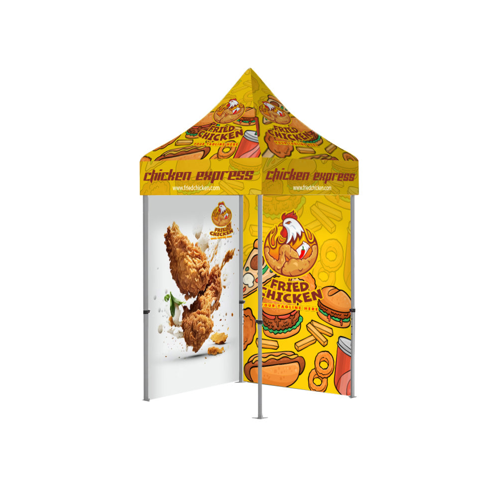 - option: 6'-4 sided table throw, flag pole, and flag pole attachment for tent with 9' double-sided graphics